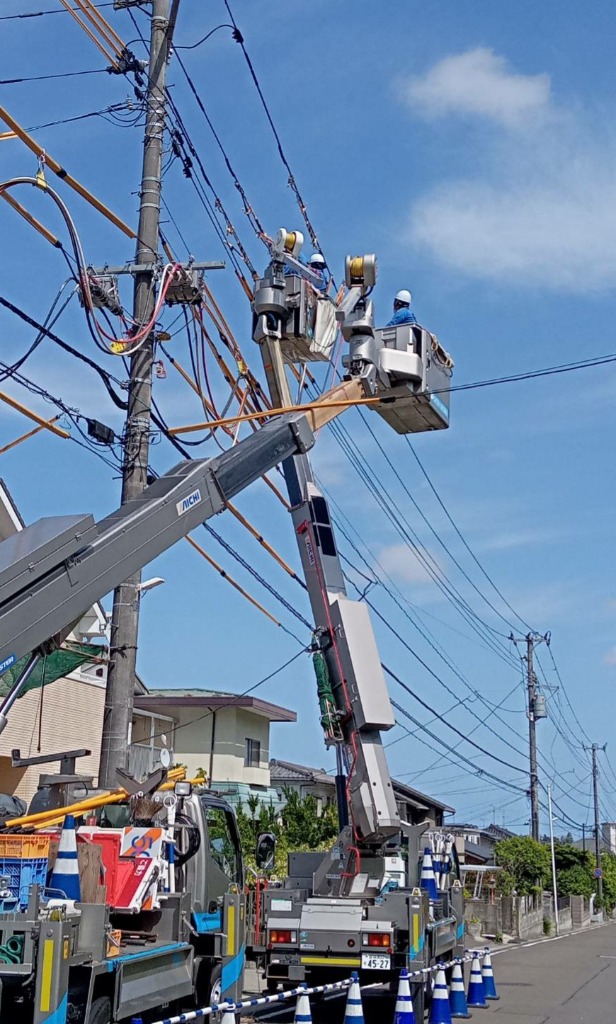 この日の作業は写真の通り電線や通信線などの混線箇所だったので少し苦労しましたが予定通り建てることができました❕